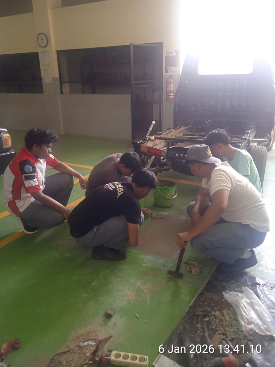 Melepas dan merakit transmisi XENIABudaya K3, penerapan 5 S di area kerja